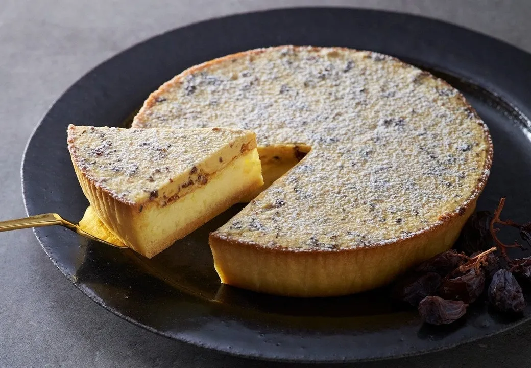 ラム酒に漬けたレーズンとバターの風味が重なり合う、濃厚なチーズケーキ。キャラメル風味のバタークリームとの相性も抜群です。デンマーククリームチーズがレモンのさっぱりした味わいを引き立て、うま味が2層に重なります。