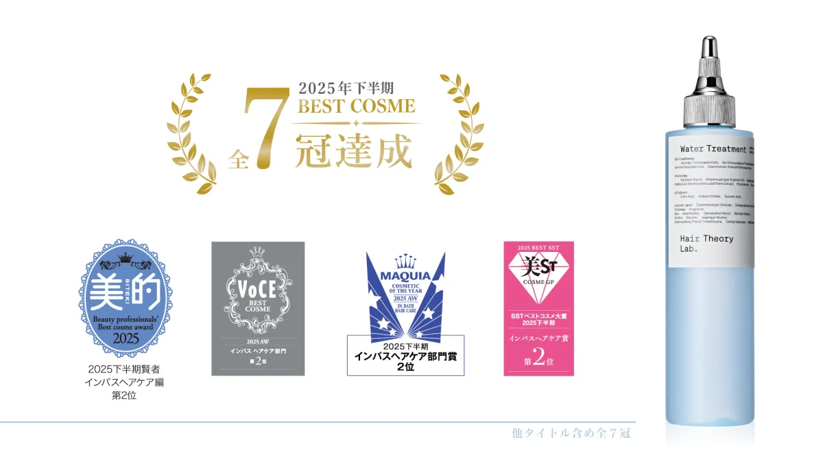 最近、多くの美容ファンの間で注目を集めているのが、ヘアケアブランド「Hair Theory Lab®」がリリースした「セラムイン ウォータートリートメント」です。この製品は発売からわずか2か月で、名だたる美容雑誌から7つのベストコスメの賞を受賞しました。また、Amazonや楽天でも高評価を得ており、その実力は確かなようです。