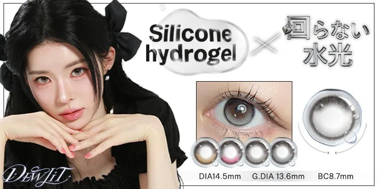 Dewlitのカラコンは、シリコーンハイドロゲル素材を使用。これにより、着用時の不快感を極力軽減し、さらに水光レンズは真下の位置を保持。美しさを追求しつつ、快適さを重視した商品に仕上げられています。