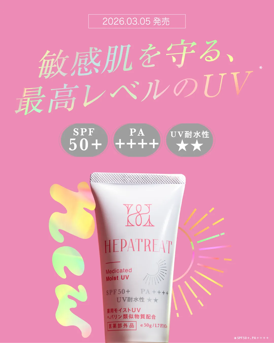 2026年3月5日、メディカル発想のスキンケアブランド「HEPATREAT(ヘパトリート)」から、敏感肌を刺激からしっかりと守る「薬用モイストUV」が新発売されます。この製品の最大の魅力は、最高水準のUVカット効果と、スキンケア成分を兼ね備えている点です。なんと赤ちゃんでも使用できる低刺激処方で、家族全員で使用可能です。