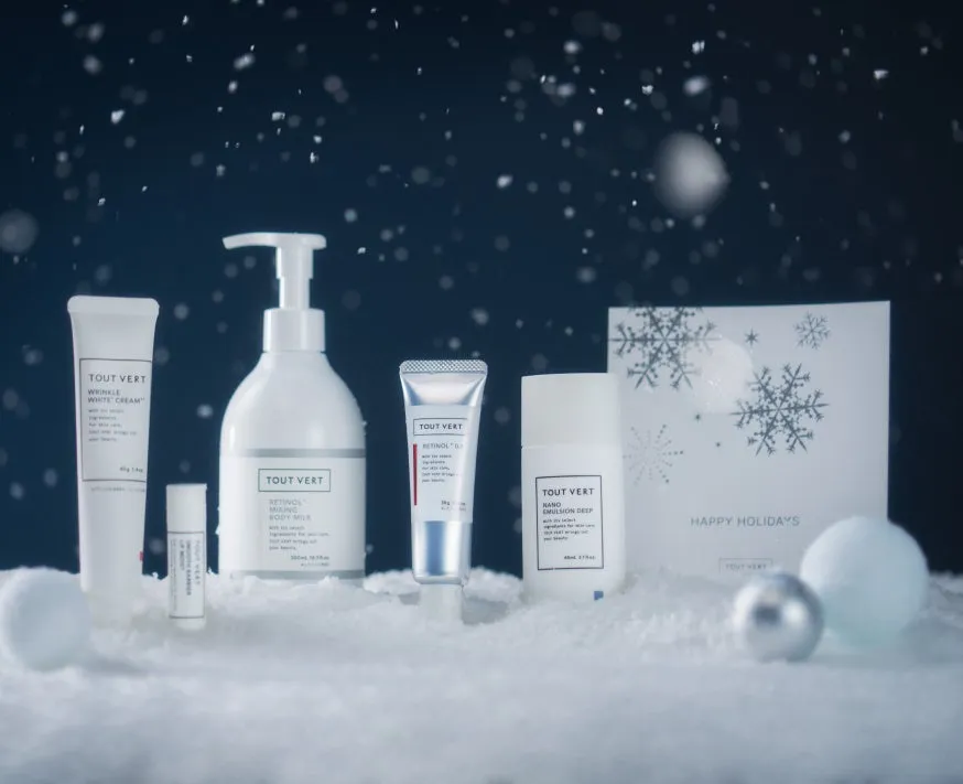 ホリデーコフレの中には、「大人毛穴・薬用美白コフレ」、「つるんとハリ肌コフレ」、そして「レチノールパーフェクトコフレ」の3種類があります。これらはそれぞれの肌悩みに特化しており、年末にかけて自分自身の肌と向き合うチャンスです。
