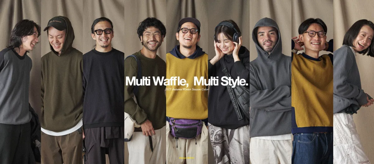 新たにリリースされた「MULTI WAFFLE」は、「Season Less, Scene Less, Style Less & Gender」をテーマに掲げ、さまざまなシーンで活躍するスタイルを提案しています。2020年に登場したクルーネックスウェットは、その軽さと乾きやすさで多くのファンを魅了し、すでにベストセラーシリーズとなりました。2025年春夏シーズンには「Always Better.」をテーマに、日常使いできるウェアとして進化を続けています。