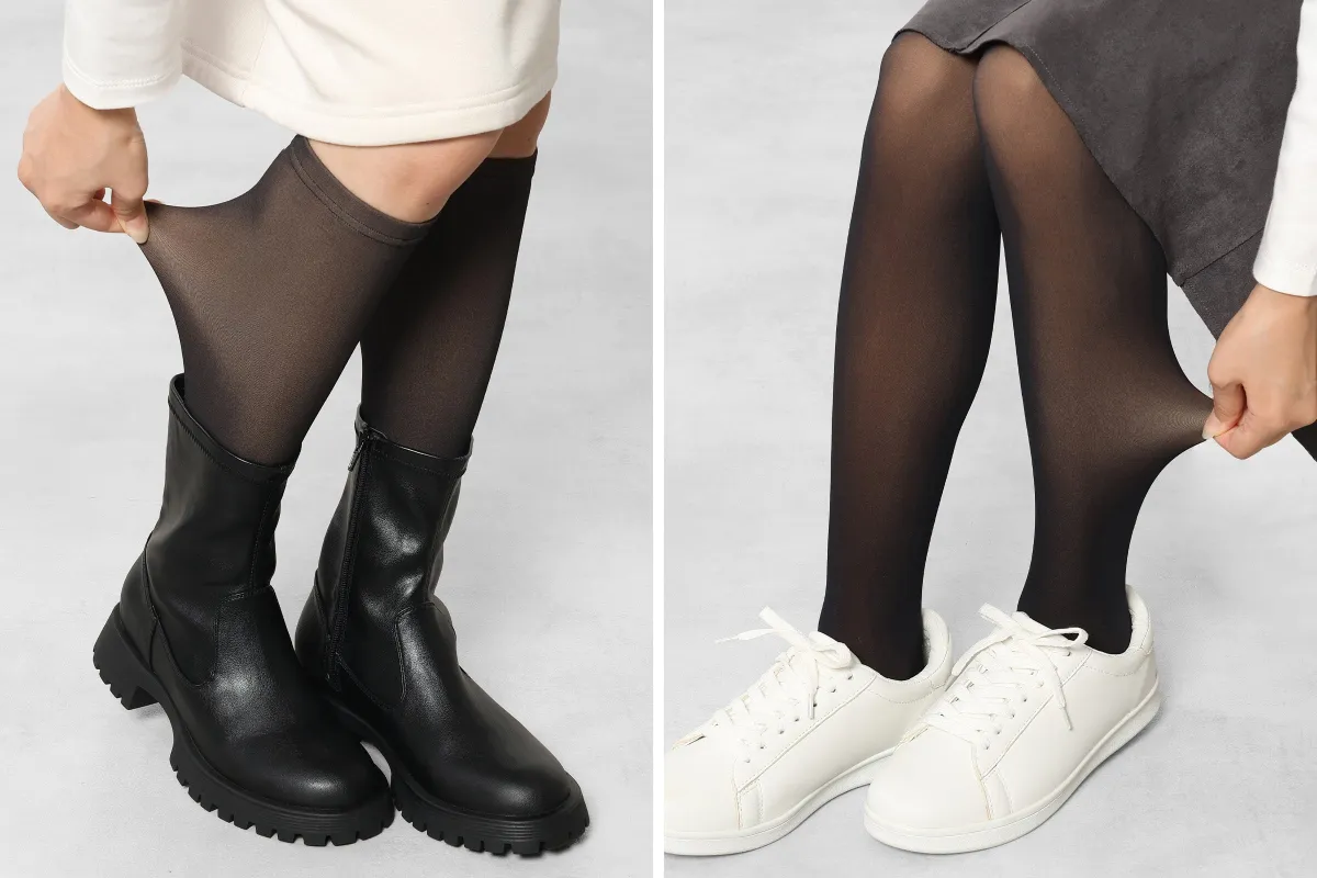 寒い冬でもおしゃれを楽しむための「薄見えフェイク靴下」と「薄見えフェイクタイツ」。これらを活用して、暖かさとスタイルを両立させましょう。