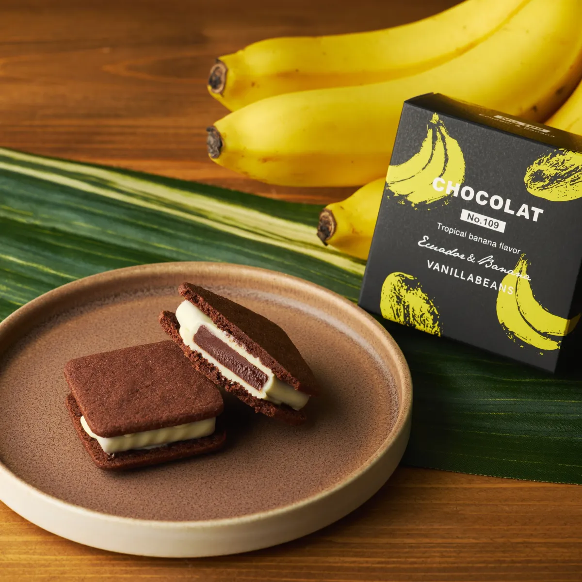 - - 「ショーコラ・エクアドル&バナナ」(432円): とろける生チョコレートが香ばしいエクアドルのカカオでコーティングされています。サクサクのバタークッキーにサンドされ、バナナの甘さとカカオの芳醇な香りが絶妙なバランスを生み出します。