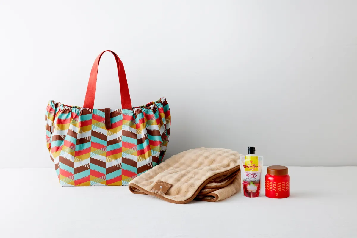 まず目を引くのは、レジカゴサイズの大きな保冷バッグ。カラフルなヘリンボーン柄に「BRONCOBILLY」と「KATSUHIRO」のロゴが描かれており、普段のお買い物にも映えるデザインです。おしゃれで実用的なバッグは、毎日の買い物を楽しくしてくれるアイテム間違いなし!