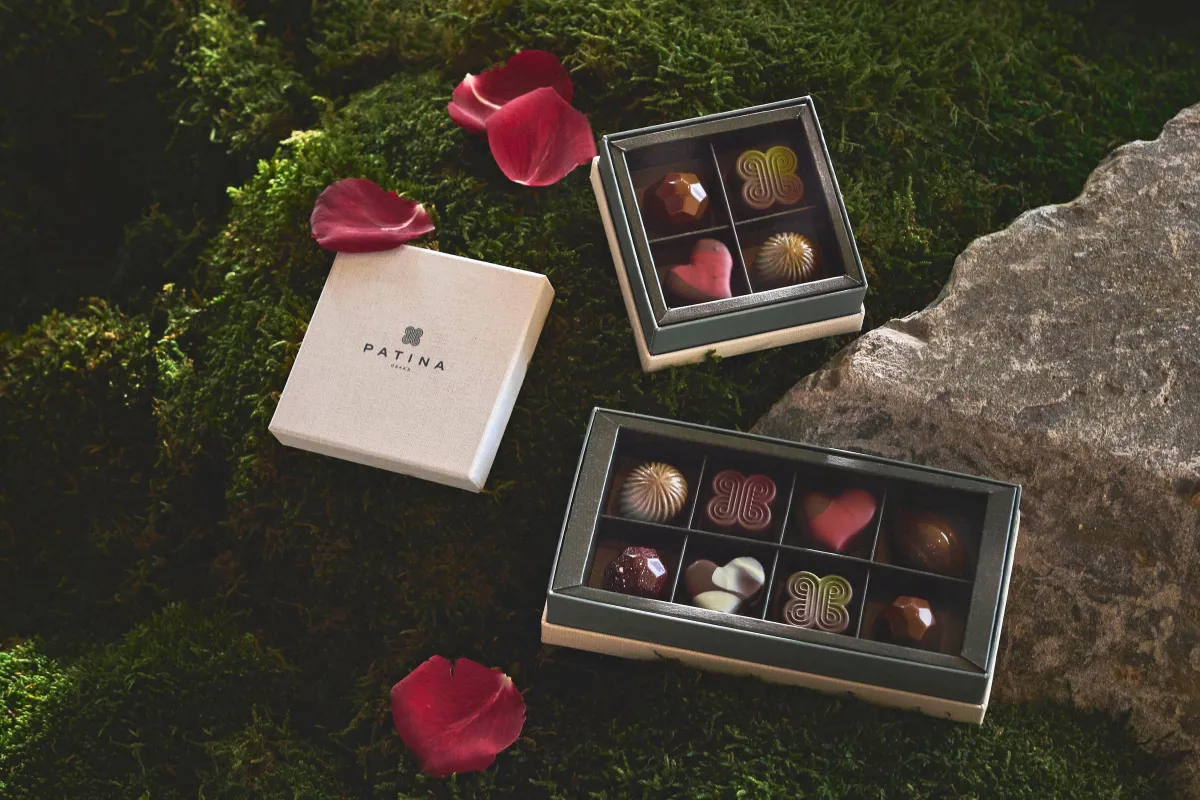 パティーナ大阪のバレンタインチョコレートは、その洗練された感性が生かされています。素材の背景や自然との循環を重視する同ホテルのフィロソフィーが詰まった、特別なシグネチャーボンボンショコラが2種類用意されました。