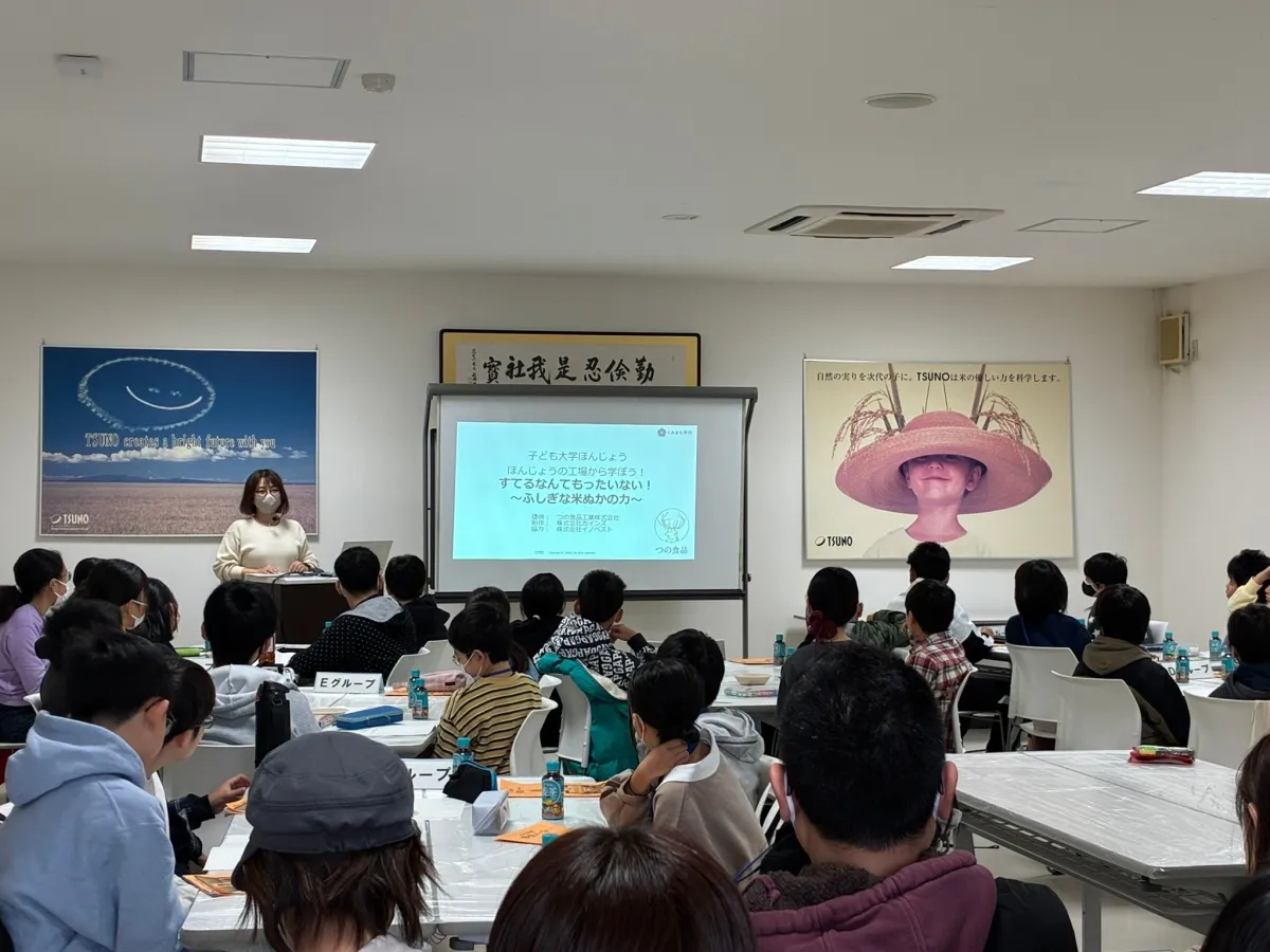 2025年11月29日、埼玉県本庄市の築野食品工業株式会社の関東工場で、地域の子どもたちを対象に「子ども大学ほんじょう第7回講義」が行われました。本イベントでは、地域(本庄)の子どもたちに米ぬかの価値とその活用法について楽しく学ぶ機会を提供しました。