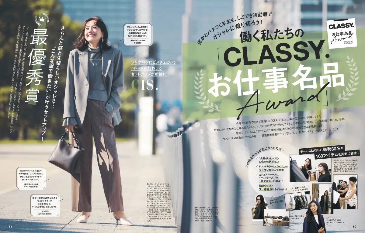 2025年10月に発売される『CLASSY.』において、「第2回CLASSY.お仕事名品Award」が開催されます。これは、働く女性たちが本当に欲しい通勤アイテムを選出するもので、読者や編集部スタッフのリアルな投票を基に受賞アイテムが決まります。今回の受賞カテゴリーは、秋冬に特化しており、特に通勤時に役立つアウター賞なども含まれているのが見どころです。
