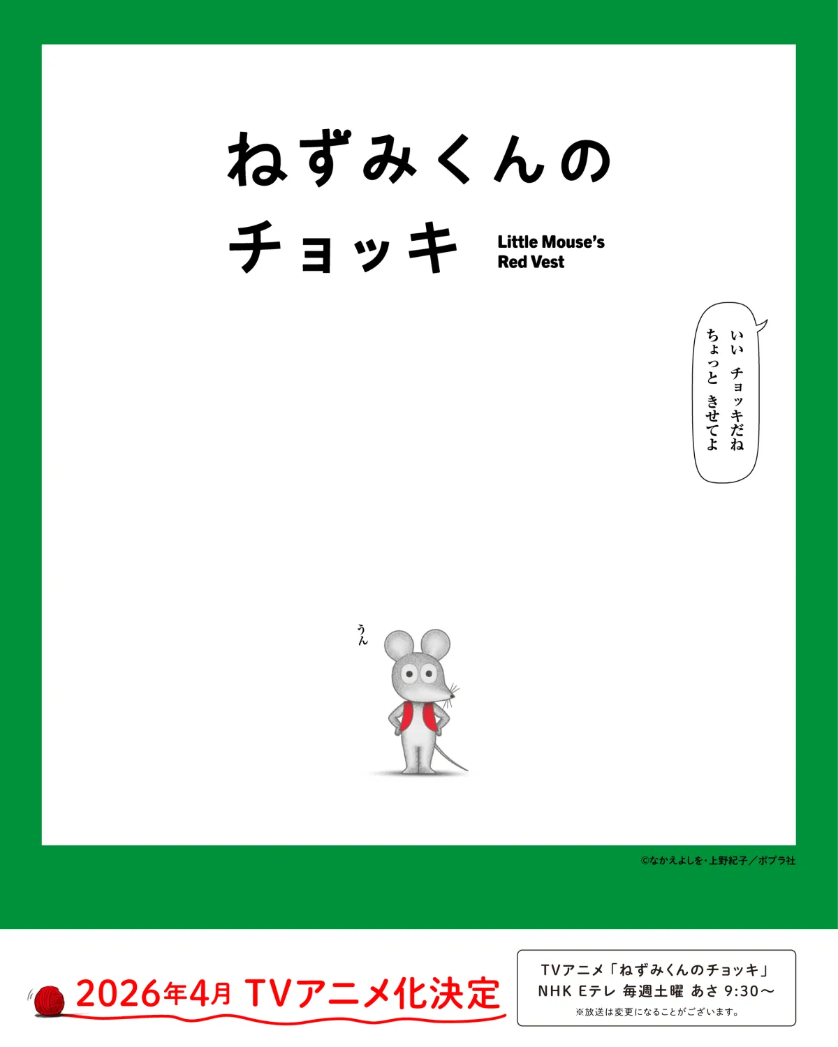 放送は2024年4月4日から毎週土曜日のあさ9:30からNHK Eテレにてスタートします。これからも多くの人々に愛され続ける『ねずみくんのチョッキ』がどのように描かれるのか、今からとても楽しみですね。