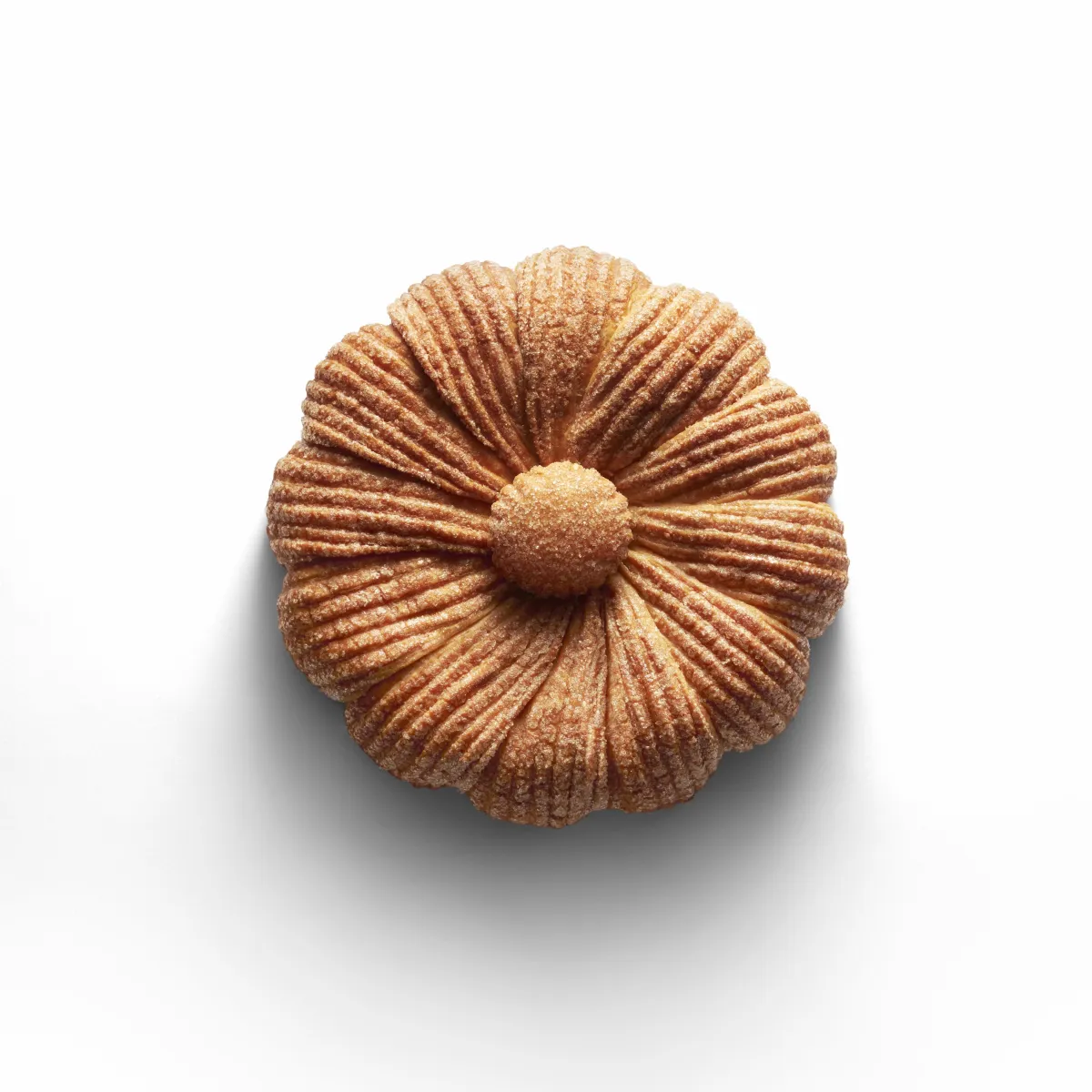 シェヴァル・ブラン パリのペイストリー・シェフ、マキシム・フレデリックとそのチームが手がけたこのガレットは、特に印象的です。牧歌的な雰囲気を感じさせるデザインは、愛らしいマーガレットの形を纏い、まるで花が咲くようです。ノルマンディー産のバターとオーヴェルニュ産の小麦で作られたパイ生地は、ふんわりと軽やかで、薄く焼き上げられたカラメリゼが香ばしさを引き立てています。