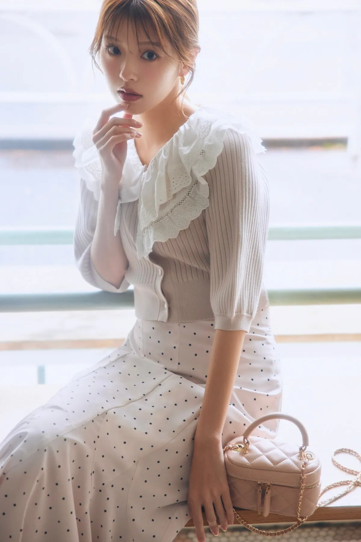 軽やかなカーディガンとスカートの組み合わせは、春の温かさにピッタリ。リラックスしたスタイルで日常を楽しんで。