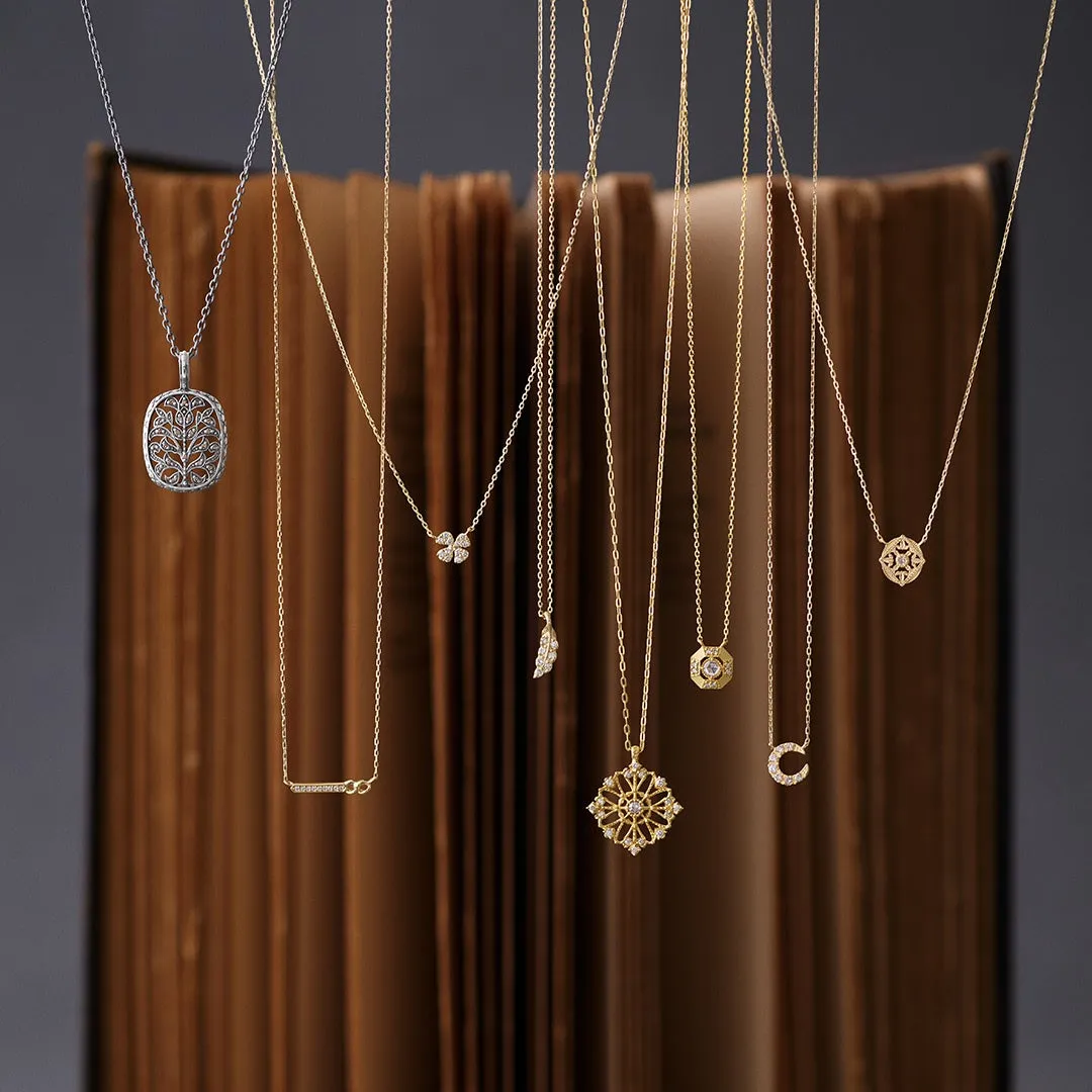 「THEBASIC」コレクションは、ネックレスをはじめ、ピアスやイヤーカフ、リングなど、豊富なデザインバリエーションを誇ります。中でもピアスやイヤーカフは、植物や月をモチーフにしており、個性的なスタイルを楽しむためのアイテムです。異なるサイズのピアスをレイヤードすることで、自分だけのコーディネートができるのもこのコレクションの魅力です。