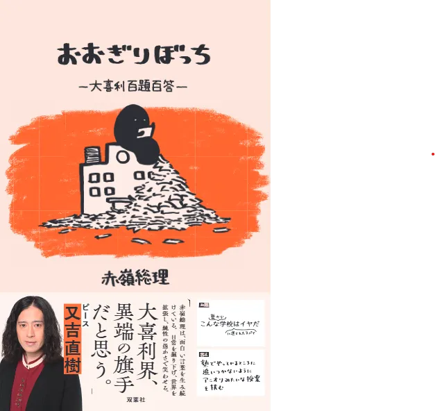 令和を代表する大喜利芸人、赤嶺総理が待望の初著書『おおぎりぼっち~大喜利百題百答~』を10月22日に発表します。お笑い界の大物であり、芥川賞作家の又吉直樹からも絶賛されるこの一冊は、大喜利ファン必見の内容です。