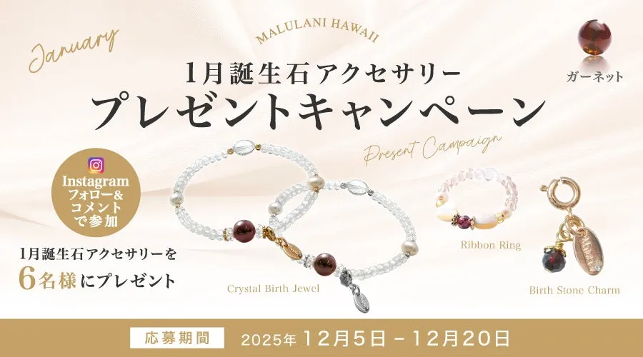 冬の訪れとともに、特別なキャンペーンが始まりました。ハワイを拠点に展開する天然石アクセサリーブランド「マルラニハワイ」では、1月の誕生石である「ガーネット」をテーマにしたアクセサリーをプレゼントするキャンペーンを実施しています。