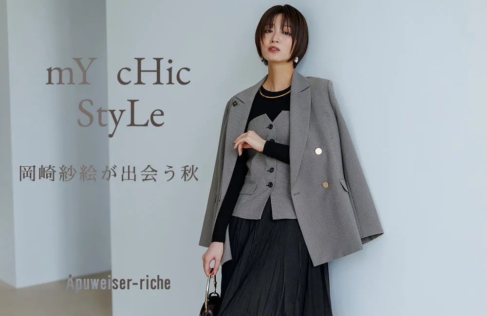 Apuweiser-richeは、トレンドを巧みに取り入れつつ、シンプルでエレガントなスタイルを追求するブランドです。自分らしさを引き立てるアイテムが揃い、さまざまなシーンで活躍できるデザインが特徴です。岡崎さんが着用したスタイルを参考に、秋のおしゃれを楽しんでみてはいかがでしょうか。