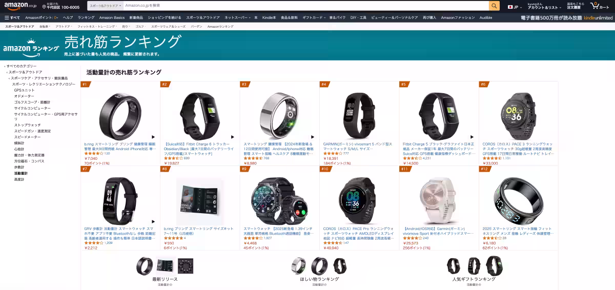 今、健康管理の新たなトレンドとして注目を集めているのがスマートリング「b.ring」です。このリングは、Amazonの「活動量計」カテゴリで売上ランキング1位を獲得し、さらにヨドバシ.comのスマートリングのカテゴリでも同様に1位を記録するなど、その人気ぶりは目を見張るものがあります。特に最近の健康志向の高まりとともに、ウェアラブルヘルスケア市場は急成長していますが、「b.ring」は、そのスタイリッシュなデザインと高機能な健康モニタリングの両立が、多くのユーザーに支持されている理由です。