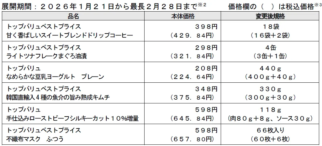 イオンでは、商品が増量されたことにより、普段買う商品が少しでもお得に感じられるように演出しています。この企画は期間限定かつ数量に制限があるため、早めに足を運んでそのお得感を実感することをお勧めします。