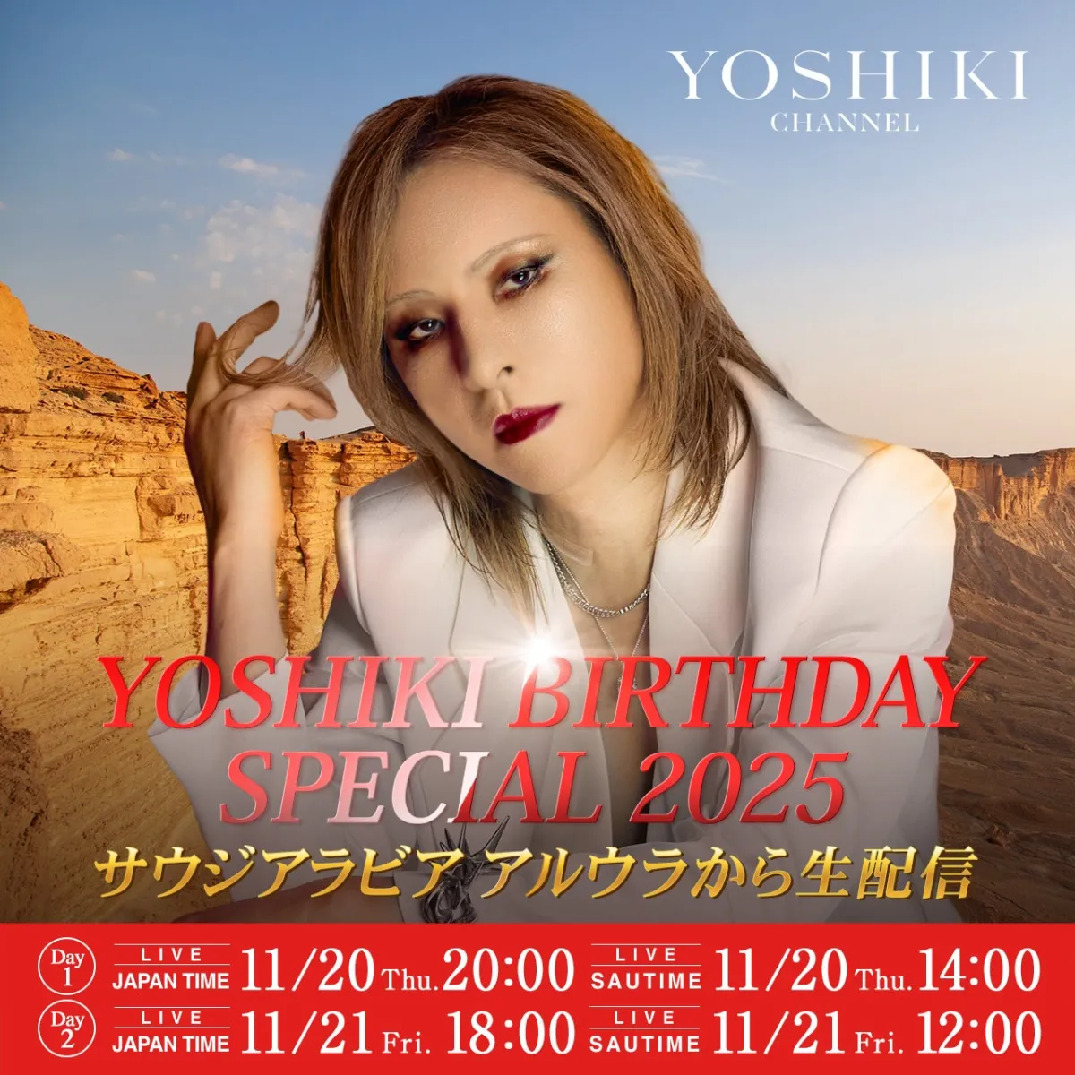 YOSHIKIの特別番組「YOSHIKI BIRTHDAY SPECIAL 2025」は、ニコニコチャンネルおよびYouTubeチャンネルで配信されます。
