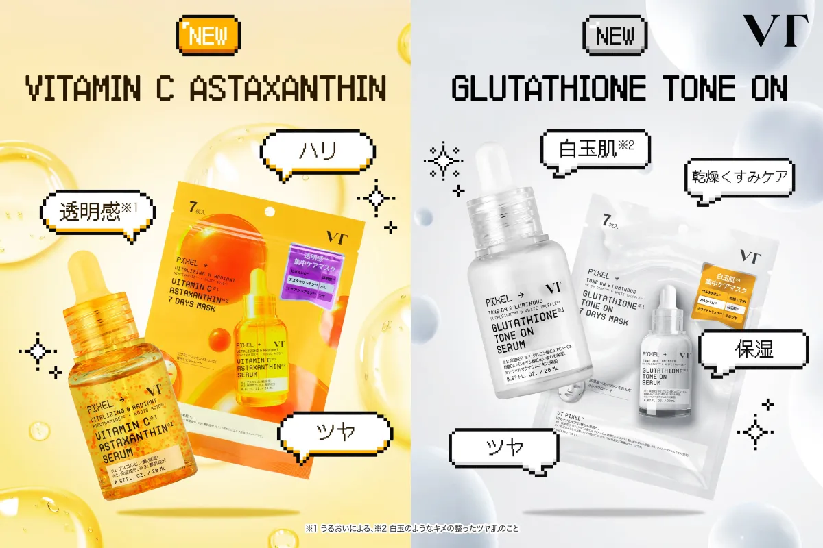 韓国で人気のスキンケアブランド「VT COSMETICS」に、新しいスキンケアラインが登場します。2026年4月18日(土)から順次発売される「ビタミンC アスタキサンチン」ラインと「グルタチオン トーンオン」ラインは、透明感のある肌を実現するために特別に開発されました。