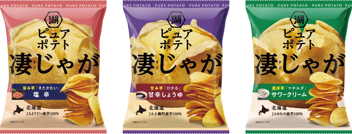 「ピュアポテト」ブランドは2019年にスタートして以来、毎年好評を得てきました。特に旬の時期に合わせた北海道のブランドじゃがいもを使用し、各品種の個性と美味しさを届ける試みを続けています。今年もその魅力を多くの人に伝えるために、シリーズ名を「凄じゃが」にリニューアル。これにより、見た目にもインパクトのあるパッケージができあがりました。