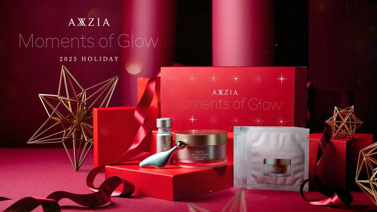 このセットには、シリーズ累計販売数が600万個を超える「アクシージア ビューティーアイズ エッセンスシート プレミアム プラス」と、同シリーズの高保湿アイクリームが含まれています。目もとのエイジングサインにしっかりアプローチし、潤いをチャージします。特に、独自形状の360°シートは、肌にぴったり密着し、まぶたから頬までの三角ゾーンを均一に潤すために設計されています。