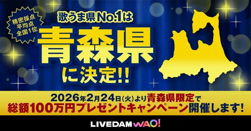 青森県では“歌うま県No.1”を記念して、総額100万円をプレゼントするキャンペーンを実施中です。全国のカラオケファンに向けて、2026年2月24日から3月31日の期間中、青森県内のDAM設置店舗で参加が可能です。応募方法も簡単で、店舗のSmartDAMからキャンペーンバナーをタッチし、指定の楽曲を歌唱後にQRコードから応募フォームにアクセスする仕組みとなっています。