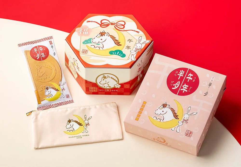 新年の準備は、ぜひ『午年半月』と『午年福ポーチ』で。運を呼び込むお菓子で、幸せな一年のスタートを切りましょう。