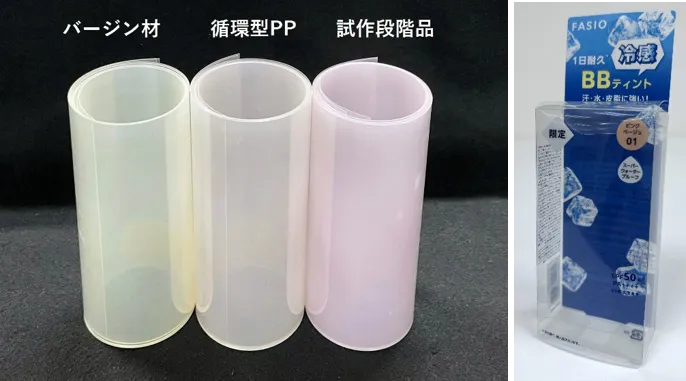 新しく開発された脱墨技術では、特別に設計された洗浄液がインク成分をしっかりと吸着・除去します。このプロセスを通じて、透明度が高く、無色透明な樹脂として再生されるのです。これによって、バージン材と同等の透明度を実現し、化粧品の個包装箱としての役割を果たすことができるようになりました。