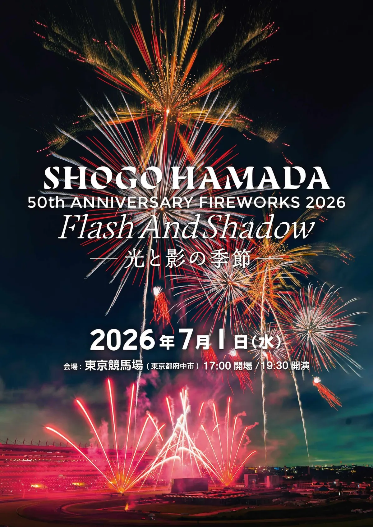 2026年7月1日、浜田省吾がソロデビュー50周年を迎えるにあたり、東京競馬場で一夜限りの花火エンタテインメントが幕を上げます。このイベントは「SHOGO HAMADA50TH ANNIVERSARY FIREWORKS 2026 FLASH AND SHADOW〜光と影の季節〜」という名称で、浜田省吾の楽曲をバックに、最新型の花火が華麗に打ち上がる特別な企画です。